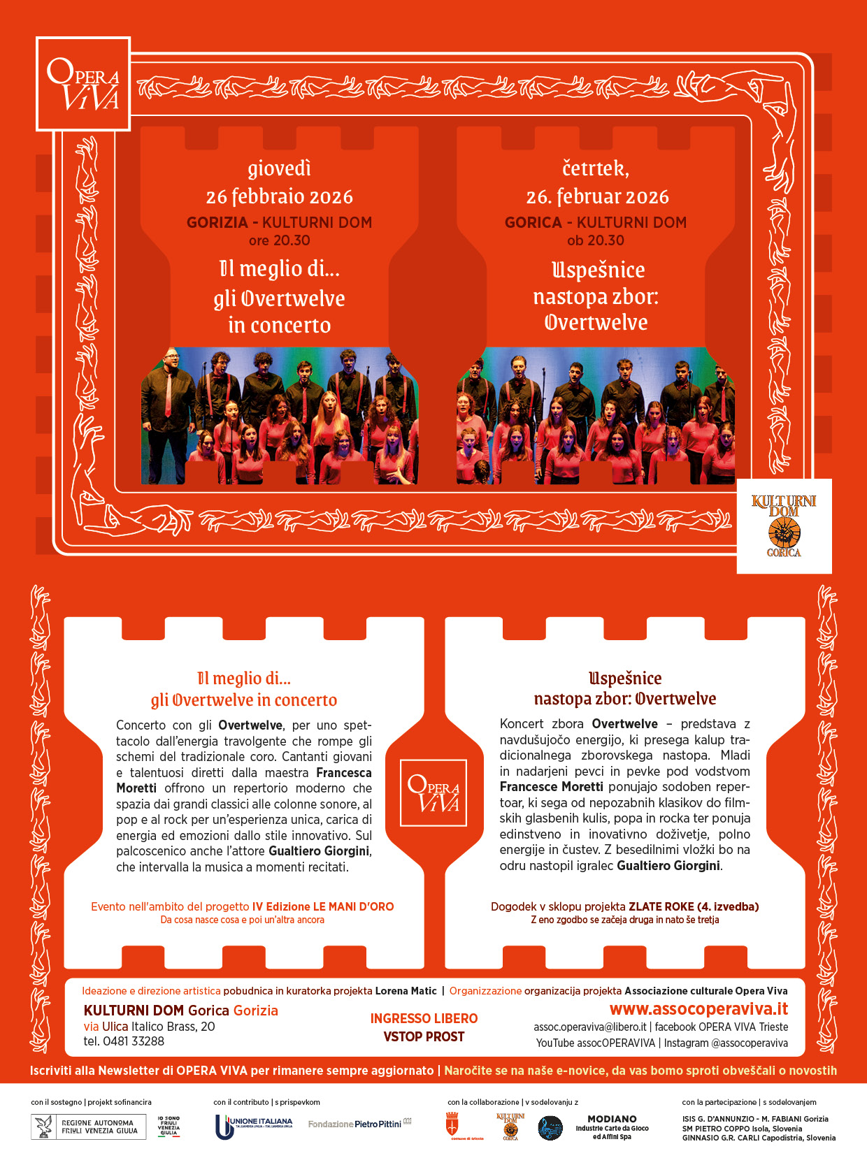 Kulturni dom via Brass 20, Gorizia, IL, ItalyMartedì 24 febbraio 2026 alle 18:00 All’inaugurazione interverranno il responsabile scientifico Edino Valcovich di Trieste e il responsabile ricerca area slovena-IZS Gorazd Humar di Šempeter. L’Isonzo nasce in Slovenia, nella Val Trenta, e dopo un…