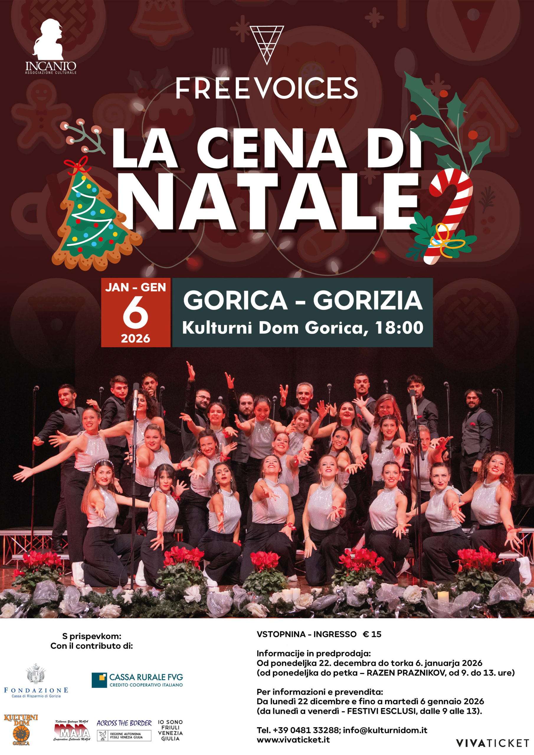 Božična večerja s Freevoices Predstava, ki je že po naslovu povsem nova in skorajda nasprotje drugih božičnih produkcij Freevoices, La Cena di Natale (Božična večerja) želi na nek način zbrati vse okoli božične mize, v…